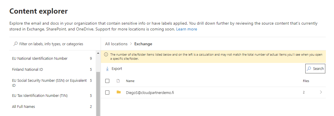Inside Content explorer you will find the SITs and Labels matched in your locations.