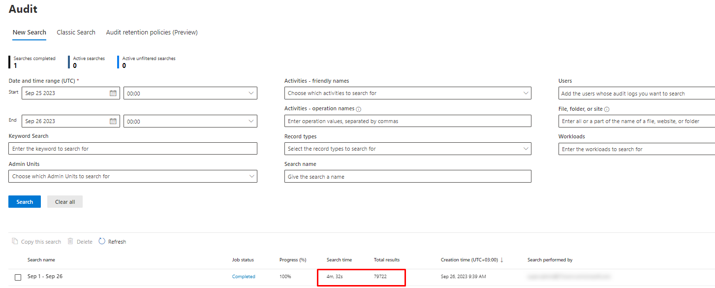 Your organization needs access to vital audit log events for insights and deeper user activity analysis. In the past, your search capabilities in the Microsoft Purview compliance portal were restricted to concurrent audit searches and reviewing historical search jobs. Additionally, these critical audit searches relied on keeping the browser window open for completion.