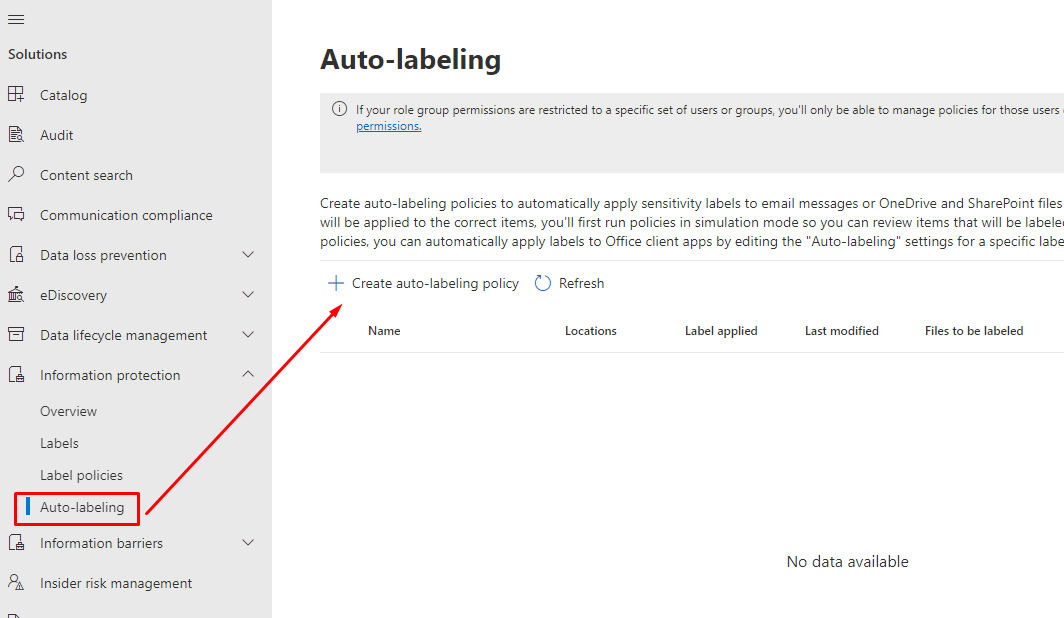 Open Auto-labeling from https://compliance.microsoft.com/informationprotection/autolabeling