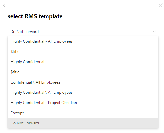 You can choose the different RMS templates directly from there.