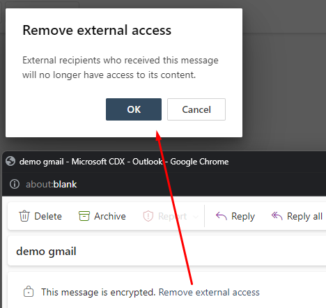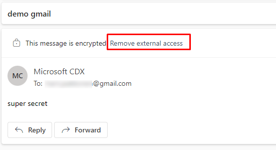 ExternalMailExpiryInDaysidentifies the number of days that recipients can keep mail before it expires. You can use any value between 1–730 days.- You can also revoke a message that is sent with Encryption but you cannot revoke a mail that you sent to a recipient that uses a work or school account from Microsoft 365 or a user that uses a Microsoft account