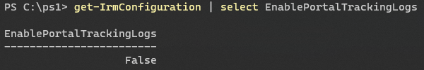 Set-IrmConfiguration -EnablePortalTrackingLogs $true