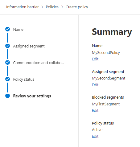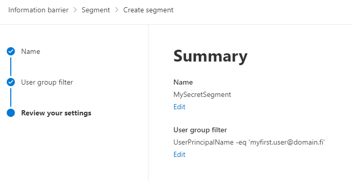 There is one for Information Barriers Segments, which is again a nice addition to comply with easiness of use.