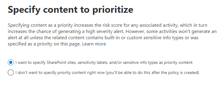 And sensitivity types that will be triggered as high risk. Example if you have trainable classifiers for customer data set.