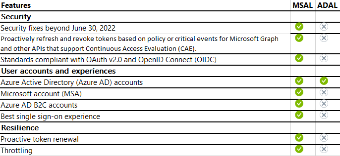 Microsoft authentication library (MSAL) is now the recommended authentication library for use with the Microsoft identity platform. If you're currently using the Azure Active Directory Authentication Library (ADAL), plan to switch to MSAL. See further guidance to migrate applications to the Microsoft Authentication Library (MSAL).