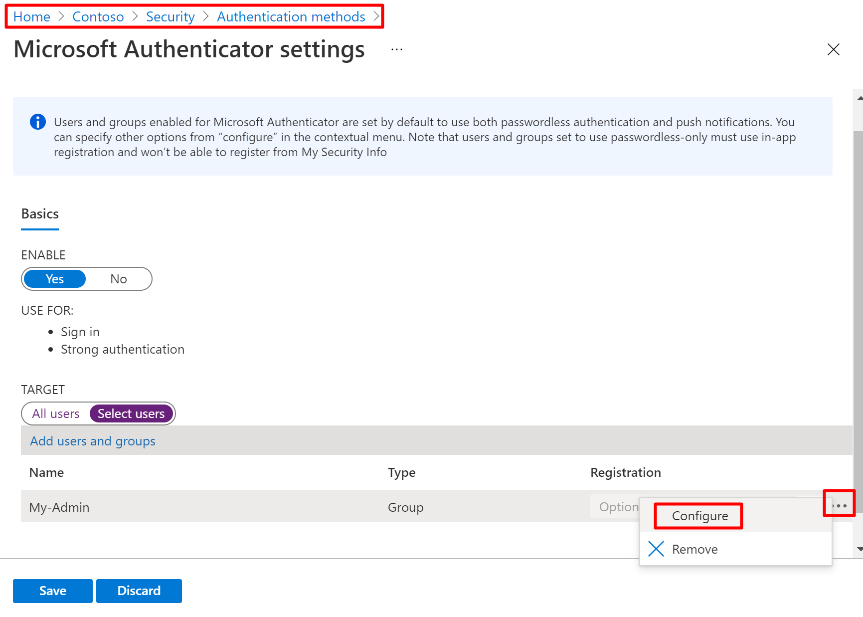 Go to authentication methods and choose a group. As of now it has to be either one, cannot choose "All users" or particular user.