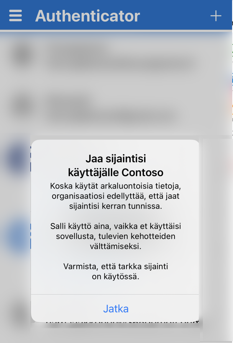 And you will be asked to share your location with authenticator (Sorry for the screenshots are in Finnish but you get the point)