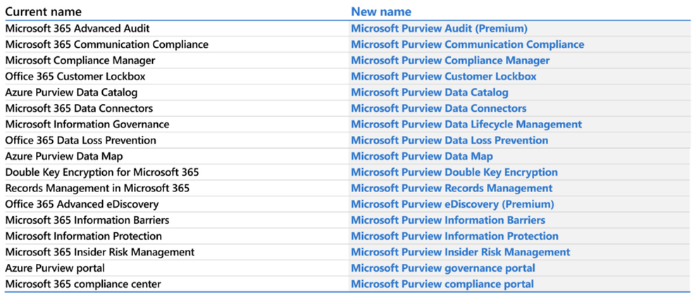 Azure Purview is now Microsoft Purview, which makes a lot of sense as they all belong under Compliance offering.