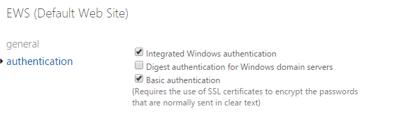 To fix the problem, head to ECP - > Servers -> Virtual Directories -> EWS -> Authentication and add the Basic authentication.