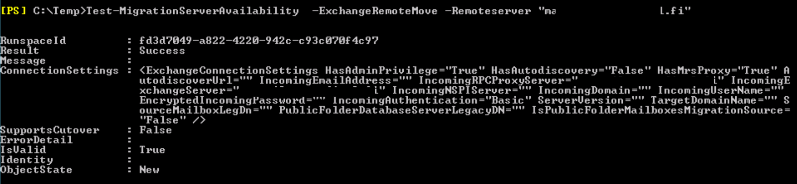 After running command Test-MigrationServerAvailability -ExchangeRemoteMove -RemoteServer "ExternalUrl" You receive the following error. You can also find the same error from the IIS log. The problem you are facing, is related to the authentication method of EWS.