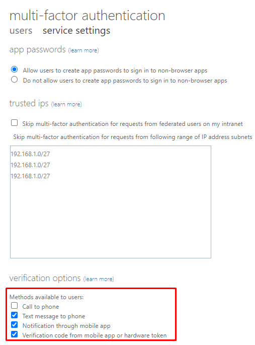 | Verification code from mobile app or hardware token | Third party software OATH tokens Hardware OATH tokens (not yet available) Microsoft Authenticator |