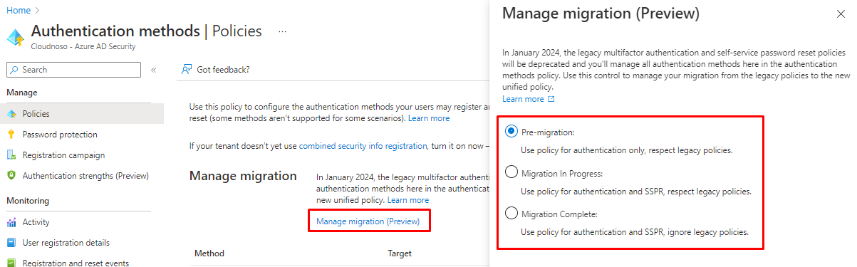Migrate MFA and SSPR policy settings to the Authentication methods