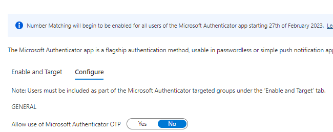 Starting on February 27, 2023, Microsoft will eliminate the admin controls and require all users to use the number match experience tenant-wide.
