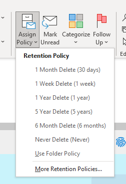 Below you can see the default retention rules that a mailbox has, sound familiar right?