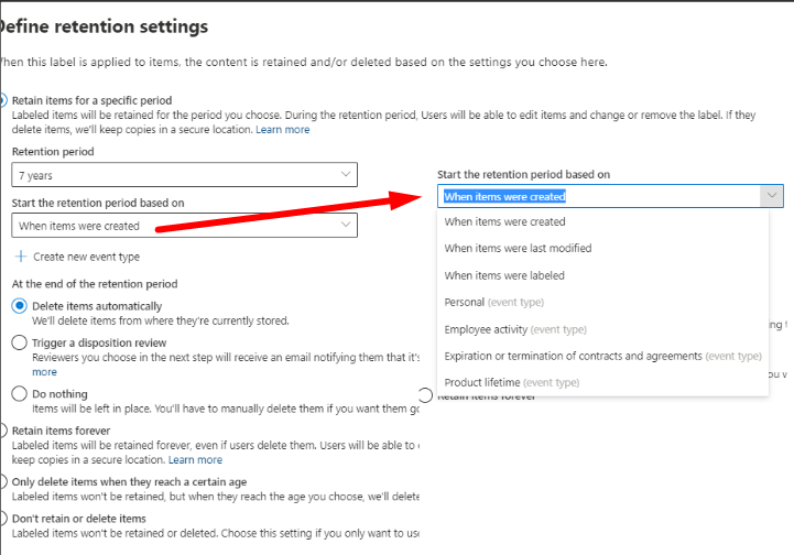 - Retention labels based on events usually trigger a disposition review at the end of the retention period, so that a records manager can manually review and dispose of the content. For more information, see Disposition of content.