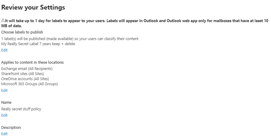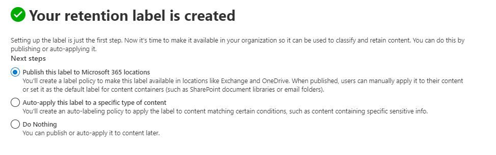 Publish mean that you can put it usable for users to see and apply. Auto-Apply means auto-labeling which will put the label to content based on location or various rules available, I will be covering auto-labeling little bit later.