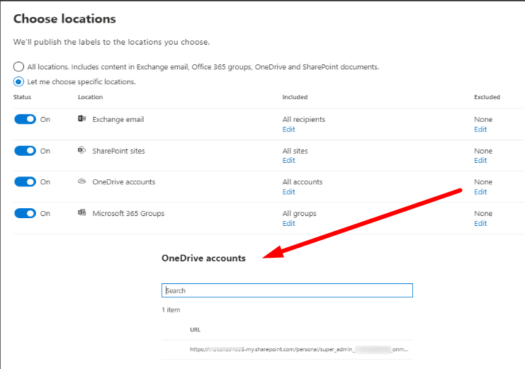 And you can also but Exclusion but for SharePoint and OneDrive sites you have to define the exclusions with the full URL but for Exchange and Groups you can choose them directly from the list.