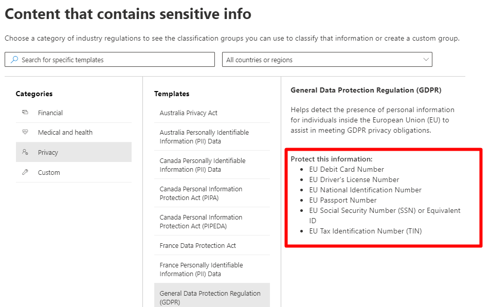 With auto-labeling you can search content for sensitive info, user keywords to find the content or make trainable classifiers.