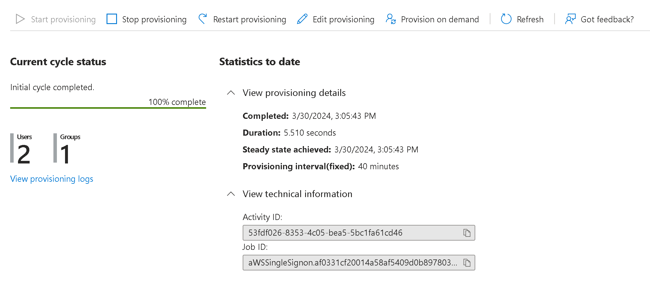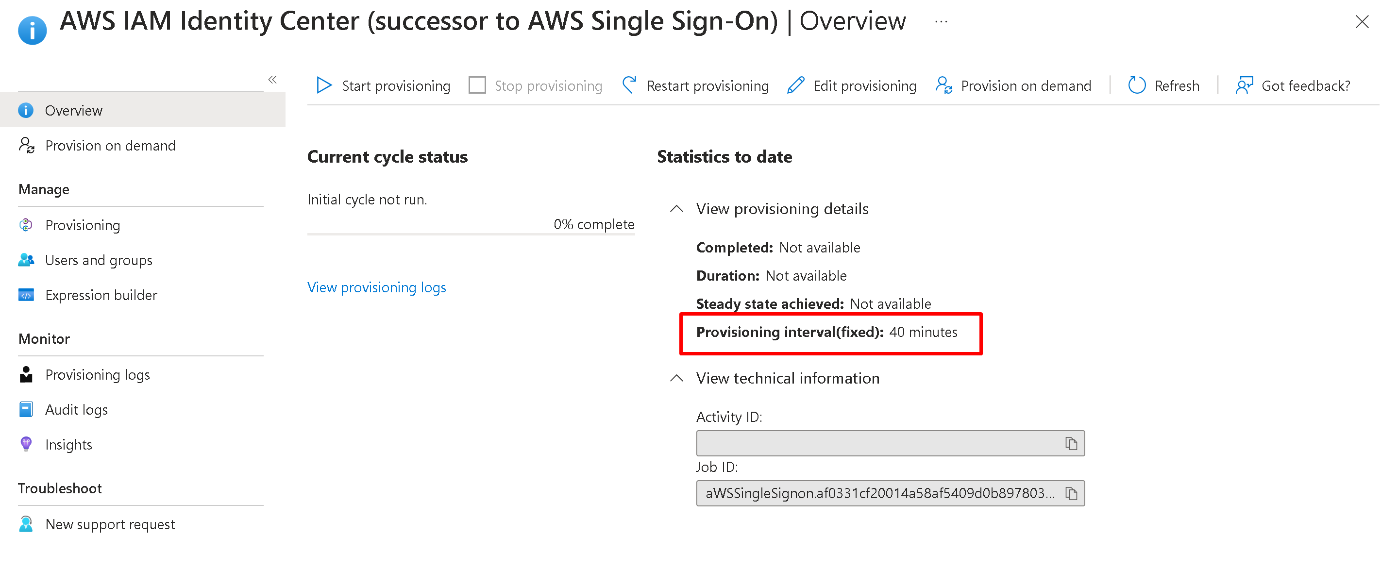 Provision is 40mins by default and from this screen you can edit, start, restart or start On demand provisioning.