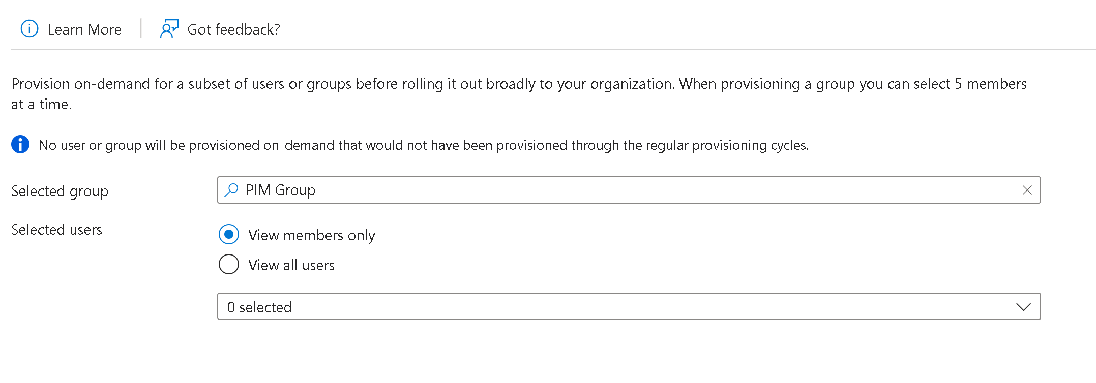 Now when PIM for Groups is clear, we can see the On demand provisioning