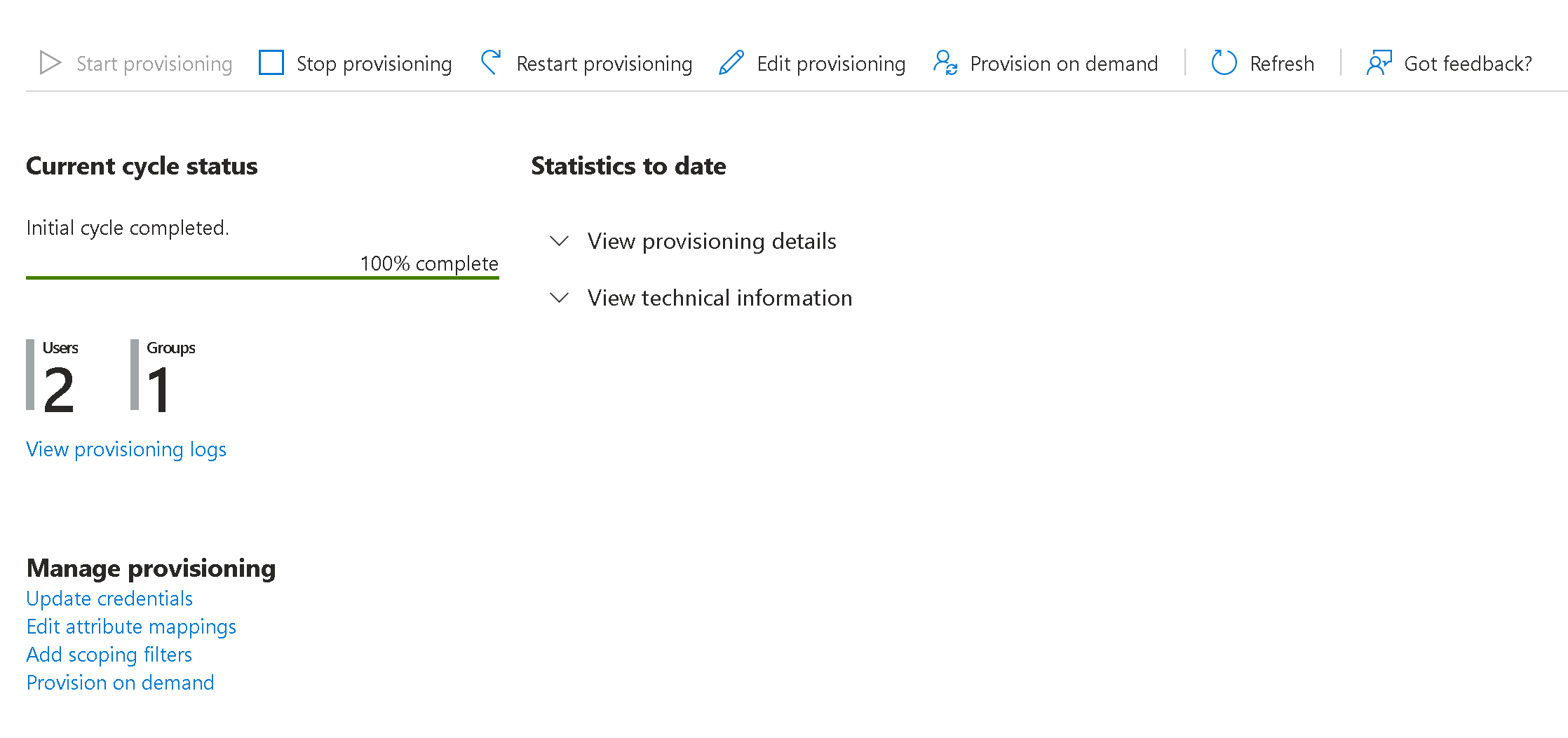 Now the users and groups will be updated and created every 40 minutes. You cannot make the time lower than that but you can always Provision the users and group on Demand.