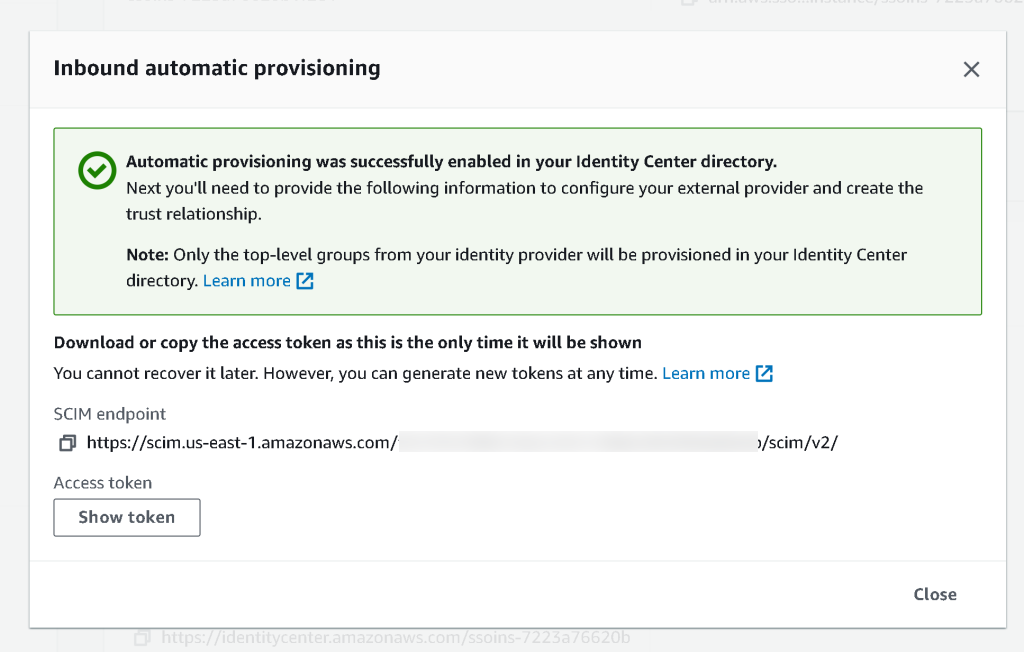 Once you the provisioning is enabled, you need to get SCIM endpoint address and Token.