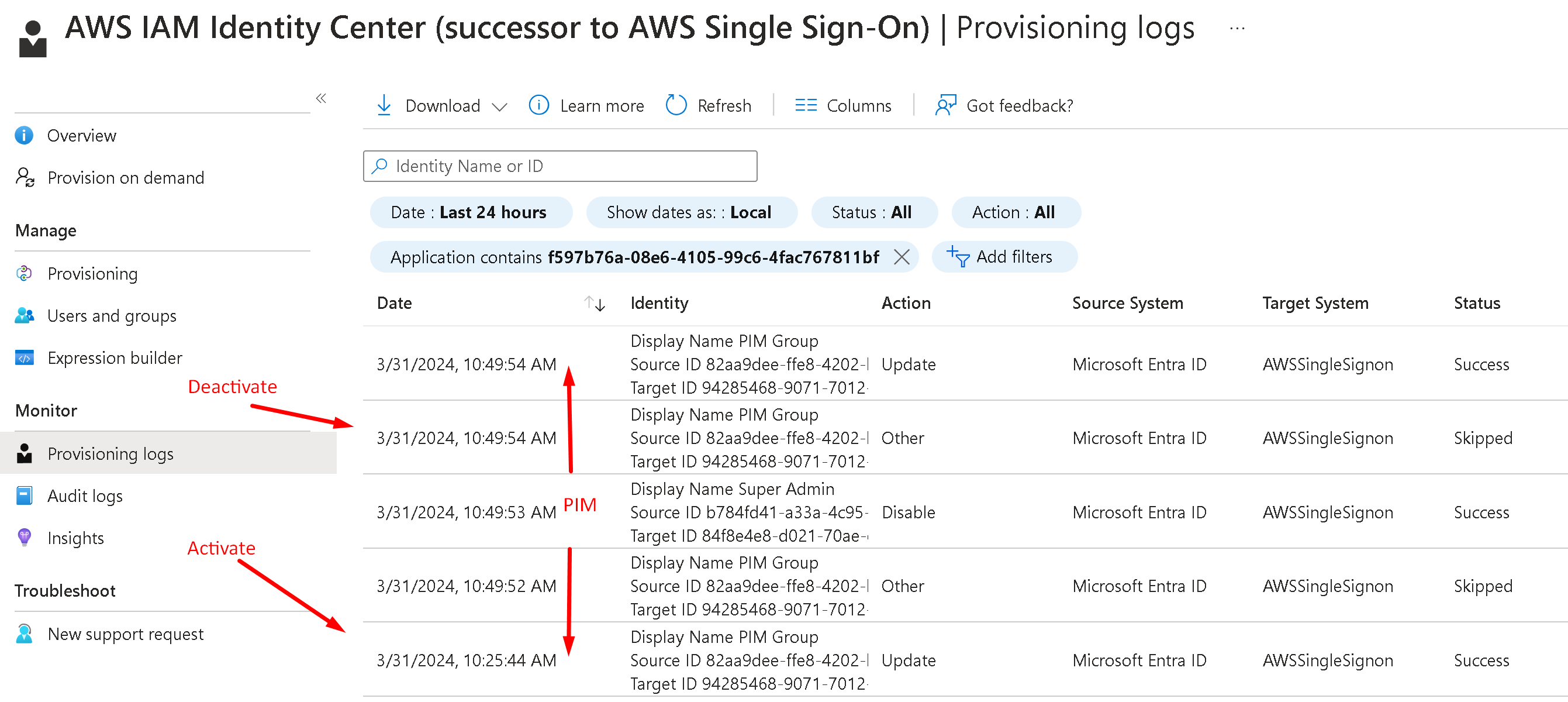 - Automatically: If a user is added to a group without using Privileged Identity Management (PIM), it takes up to 40 minutes for their access to be provisioned (connected) to the application. This happens automatically in the background.