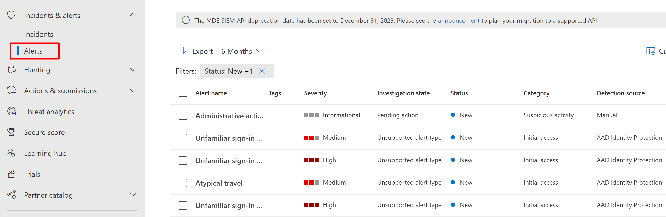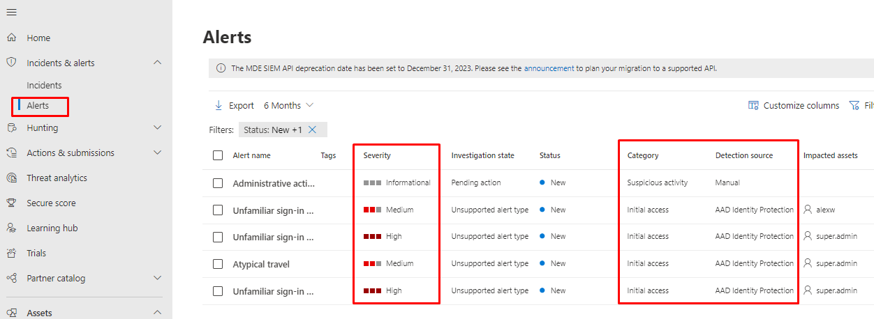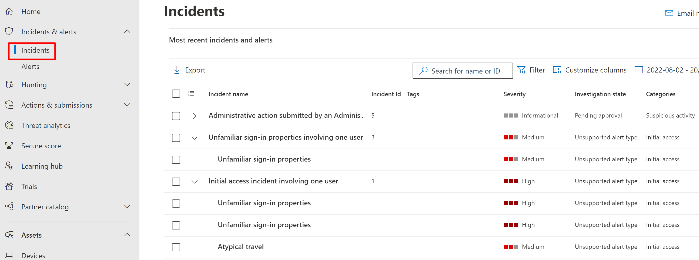 | Admin triggered user compromise investigation | Medium | This alert is generated when an admin triggers the manual user compromise investigation of either an email sender or recipient from Threat Explorer. This alert notifies your organization that the user compromise investigation was started. |