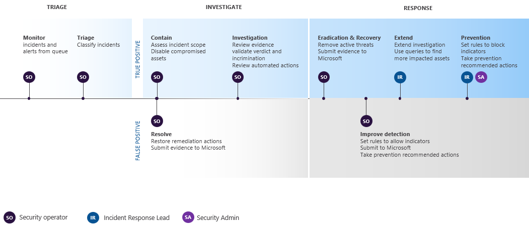 | Start an automated investigation or Approve or reject recommended actions | One of the following roles: Global Administrator, Security Administrator, Security Operator, Security Reader and Search and Purge (this role is assigned only in the Microsoft 365 Defender portal. |