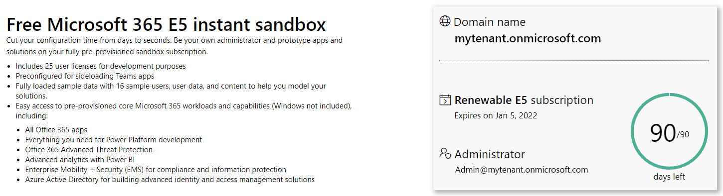 - If you are a developer, you can use this https://developer.microsoft.com/en-us/microsoft-365/dev-program