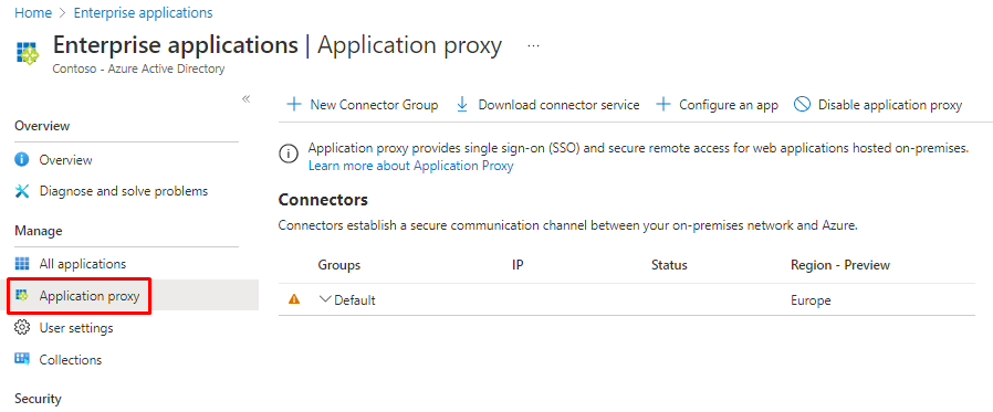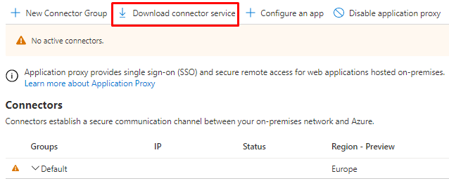 A connector group is assigned to each Application Proxy connector. For high availability and load balancing, all connectors in the same connector group work as a single unit. A connector group is made up of all connectors. If you don't make any groups, all of your connectors will be placed in the default group. In the Azure portal, your administrator can establish new groups and assign connectors to them.