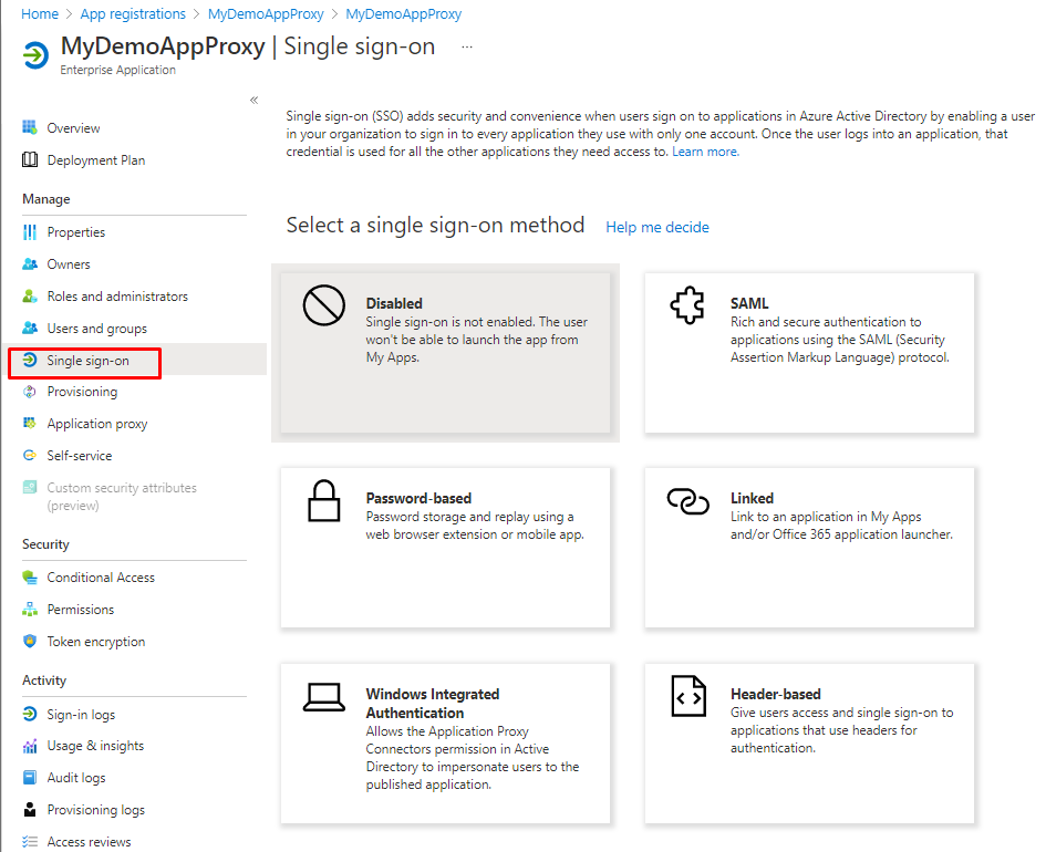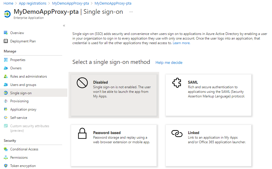 Application Proxy supports several single entry modes. The password entry is intended for applications using a combination of username and password to verify authenticity. When you adjust the password-based entry for your application, your users should enter the local application once. After that, Azure Active Directory saves input data and automatically provides its application when your users use it remotely.