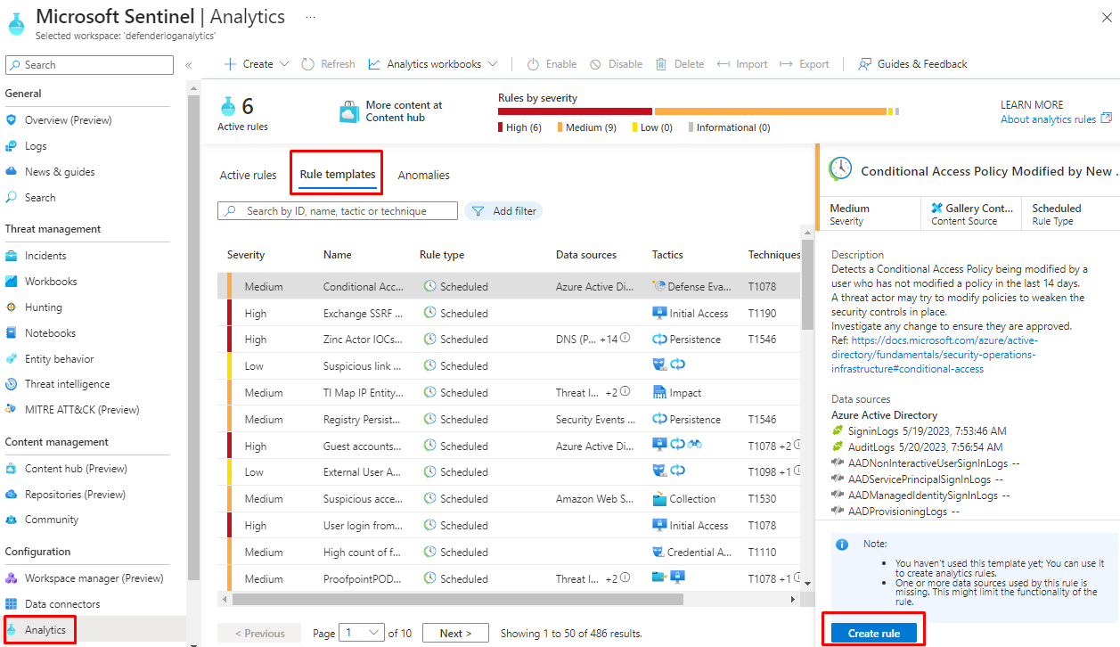 Create custom analytics rules to detect threats with Microsoft Sentinel