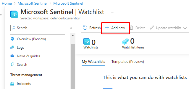 Any organization's threat management strategy must include managing and utilizing watchlists. Security teams may monitor and follow possible risks by generating a list of entities, such IP addresses or email addresses, that need more examination using watchlists. In order to build, maintain, and use watchlists in your security environment, Microsoft Sentinel offers tools.