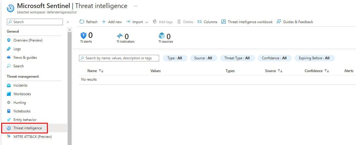 - With the Threat Intelligence worksheet, you can see essential information about your imported threat intelligence in Microsoft Sentinel.