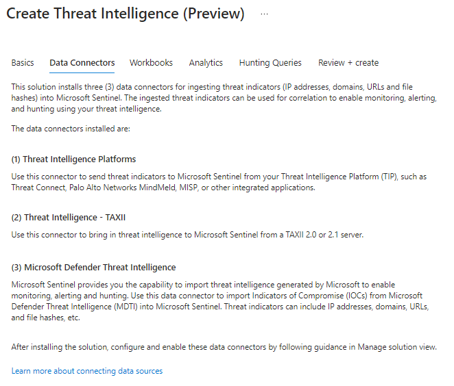 - Enable data interfaces to multiple TI platforms and feeds to import threat intelligence into Microsoft Sentinel.