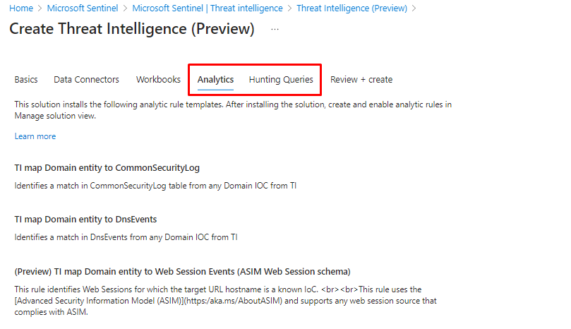 - Detect risks and produce security warnings and events based on imported threat intelligence using the built-in Analytics rule templates.