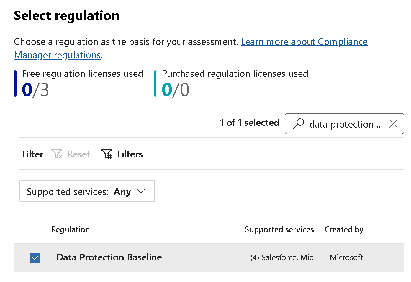 In addition, Compliance Manager provides a universal version of regulatory templates that allows you to track compliance with any unsupported service through manual implementation and testing.