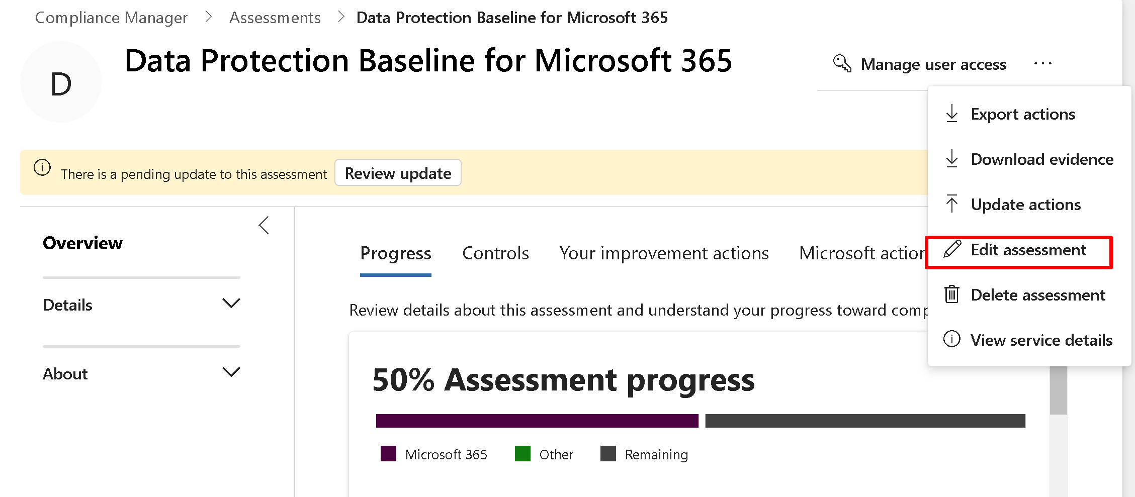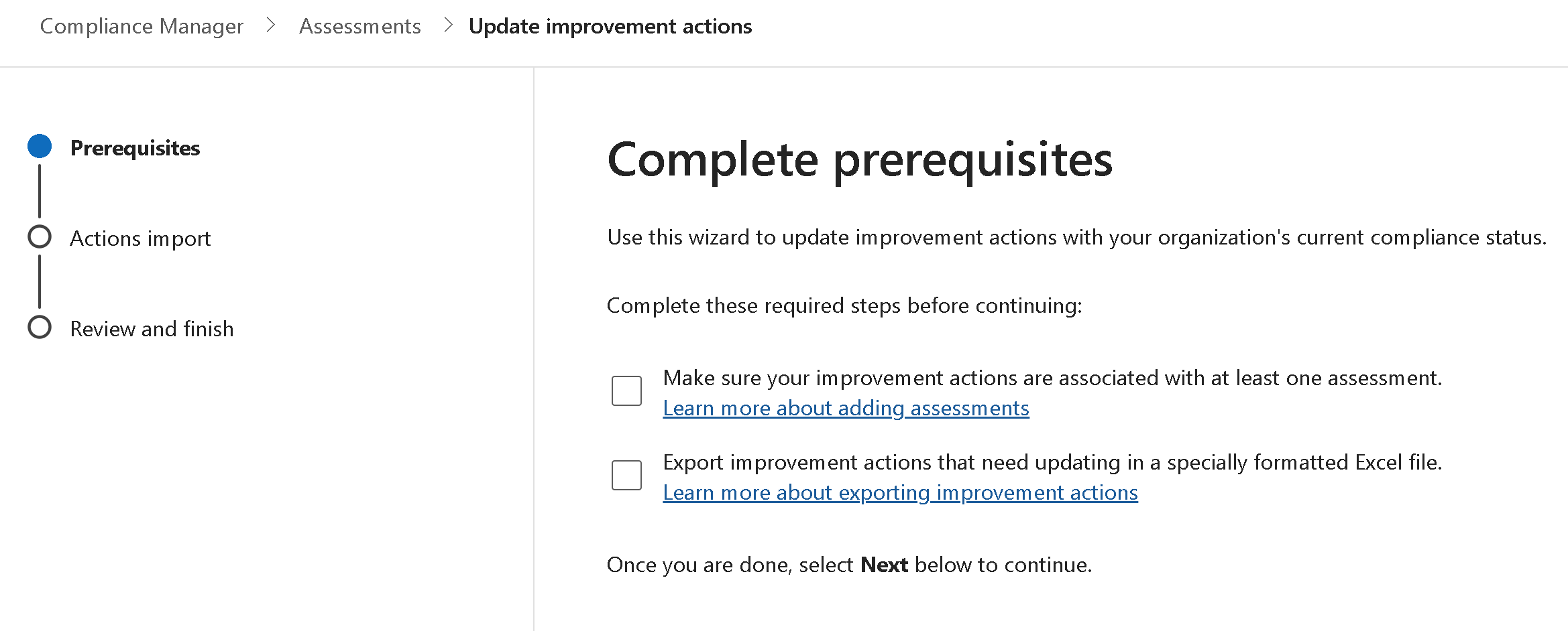 Microsoft is making changes to how you create custom assessments. While they finalize these improvements, creating or customizing templates is temporarily unavailable. If you already have custom assessments, you can still use them and manage their action data. Once the new process is ready, Microsoft will publish updated instructions.
