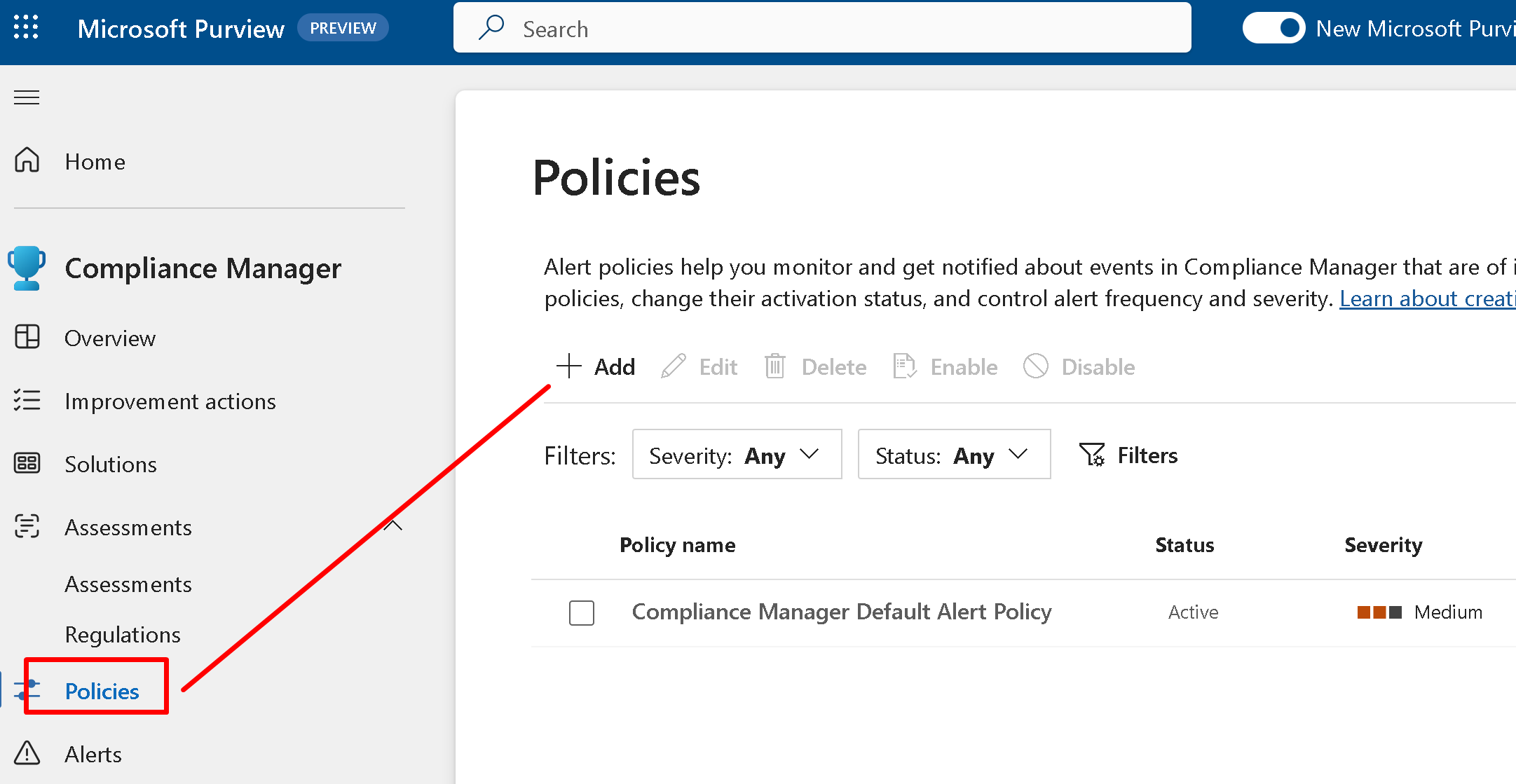 Open new Purview portal from https://purview.microsoft.com/compliancemanager/assessmentspage