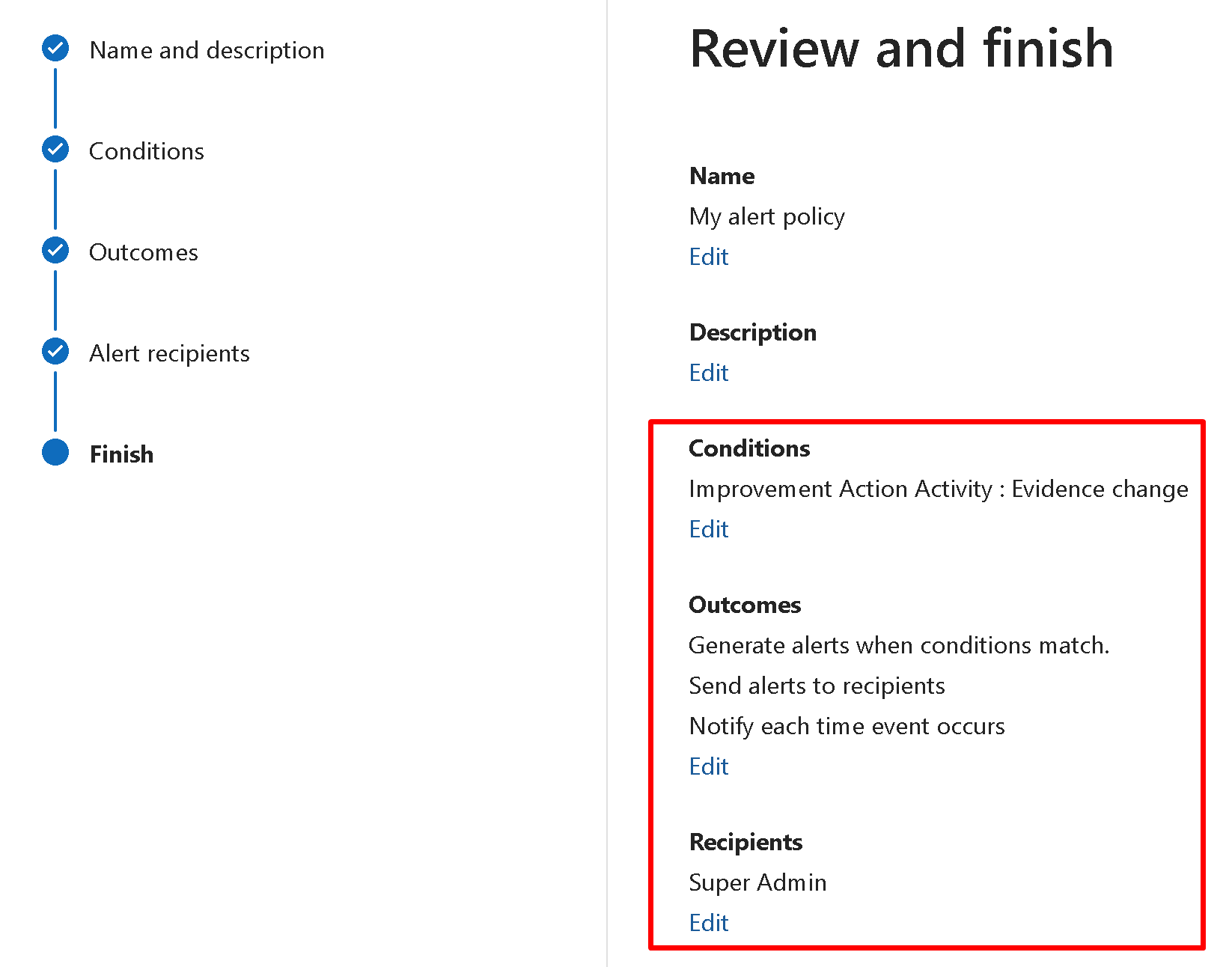 Note! Allow up to 24 hours for new or updated policies to start generating alerts.