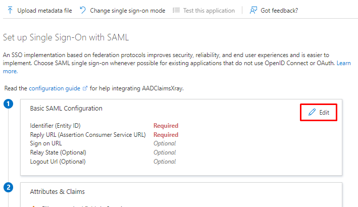 | Identifier (Entity ID) | Uniquely identifies the application. Azure AD sends the identifier to the application as the Audience parameter of the SAML token. The application is expected to validate it. |