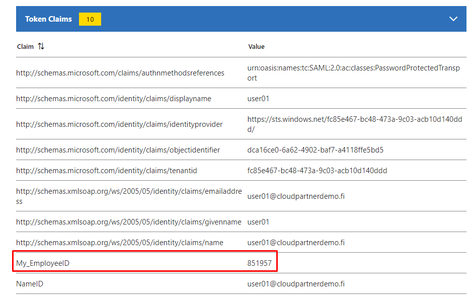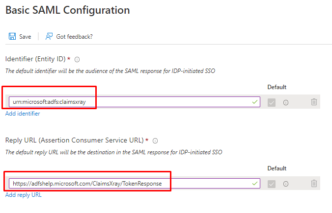 Identifier (Entity Id): urn:microsoft:adfs:claimsxray