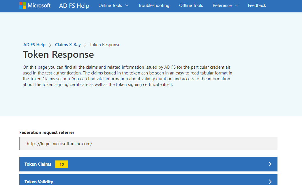 The Claims X-ray that I used in this example is part of ADFS help toolkit. The is Online and Offline tools that You could use to debug or find out possibilities with claims.