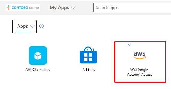 Once again go to myapplications.microsoft.com and you will find AWS there.