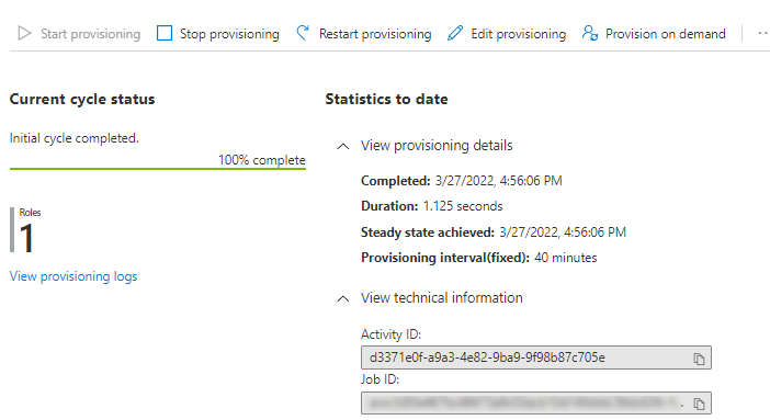 Note that the provisioning will run every 40 minutes but You can start it manually if needed.