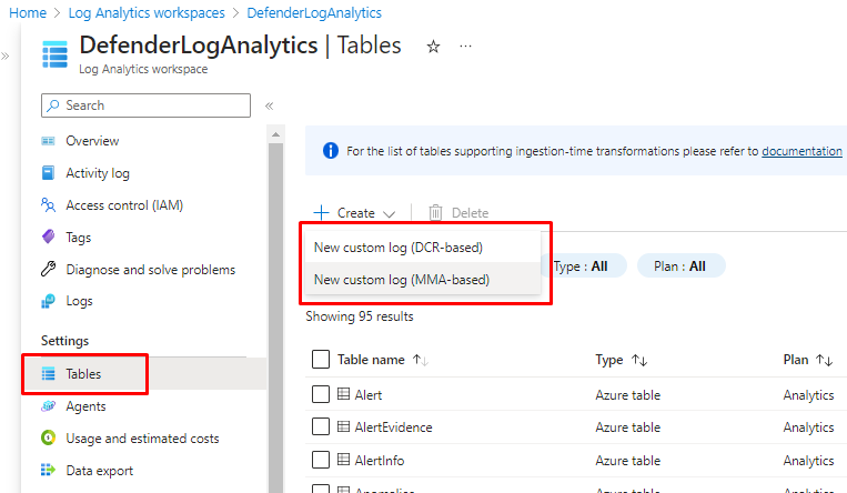 Go to Log analytics -> Tables and choose New Custom Log, either DCR or MMA based.