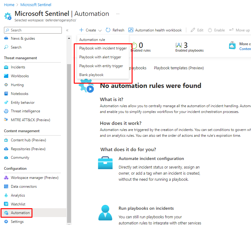 Automation on threats is an essential part on stopping the possible attack. We covered in this section Automation rules and Playbooks earlier and those are the key components on achieving the automation.