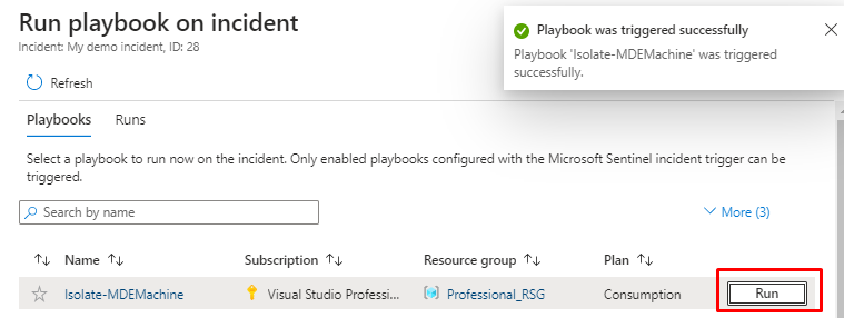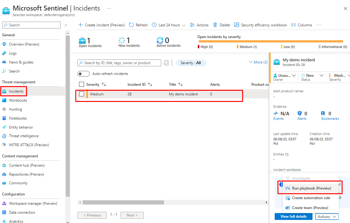Or from Sentinel and under the Incident you create and attached the Playbook