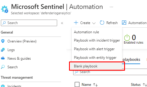 And create the Playbook from Automation pane a blank Playbook or from templates.